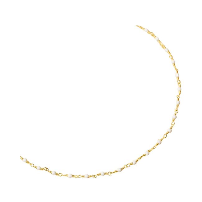 Collier Une A Une en laiton doré et agate blanche