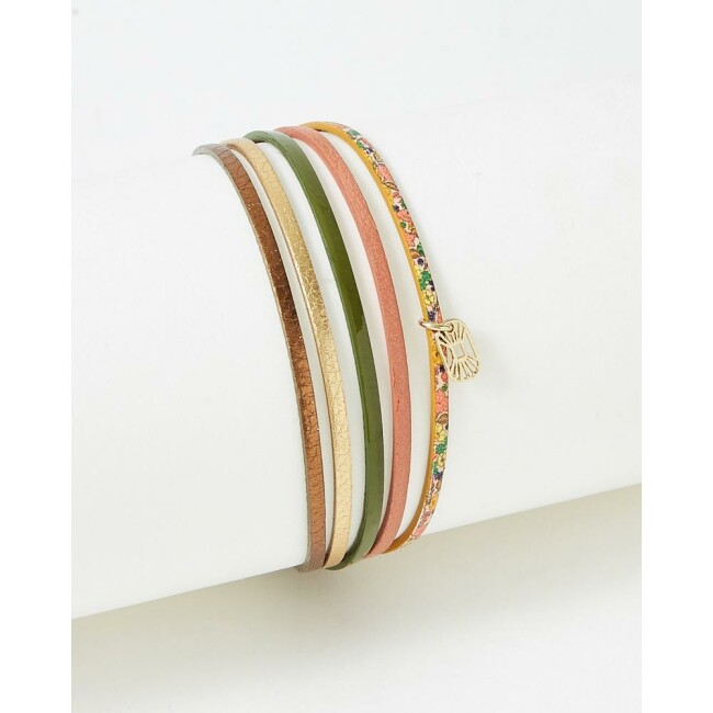 Bracelet FlowersforZoé MALICIEUX en acier doré et cuir, T2