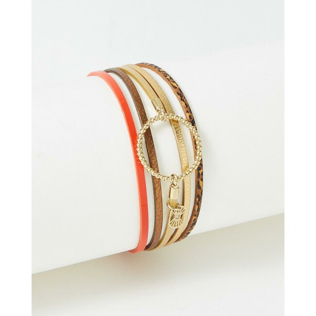 Bracelet FlowersforZoé APPOLINE en acier doré et cuir, T1