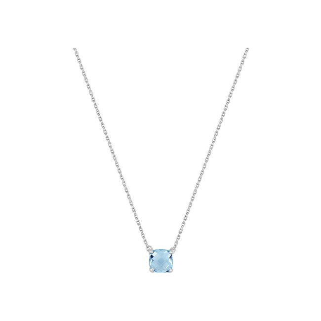 Collier en or blanc, topaze bleue et oxyde de zirconium