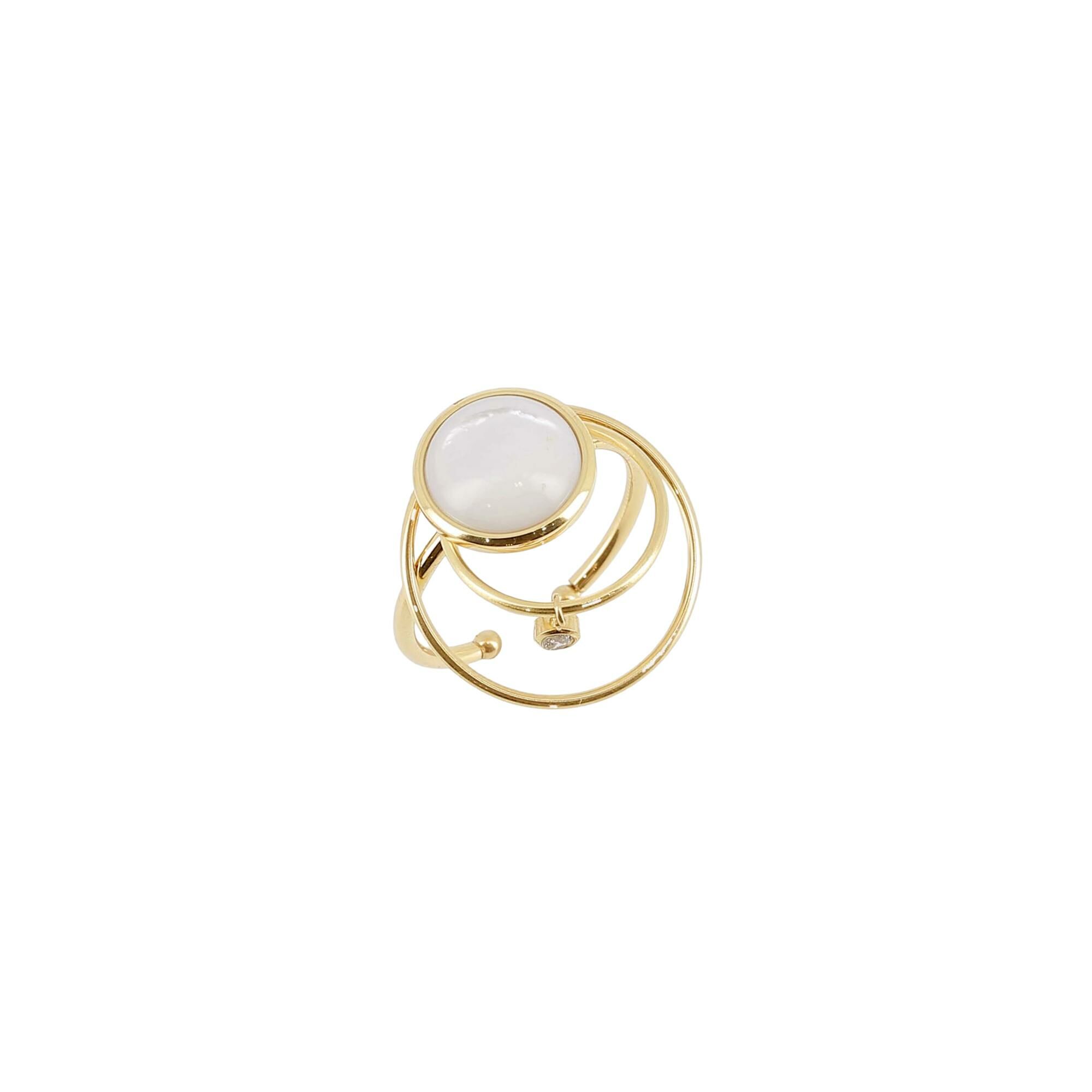 Bague Zag en acier doré et nacre, taille ajustable